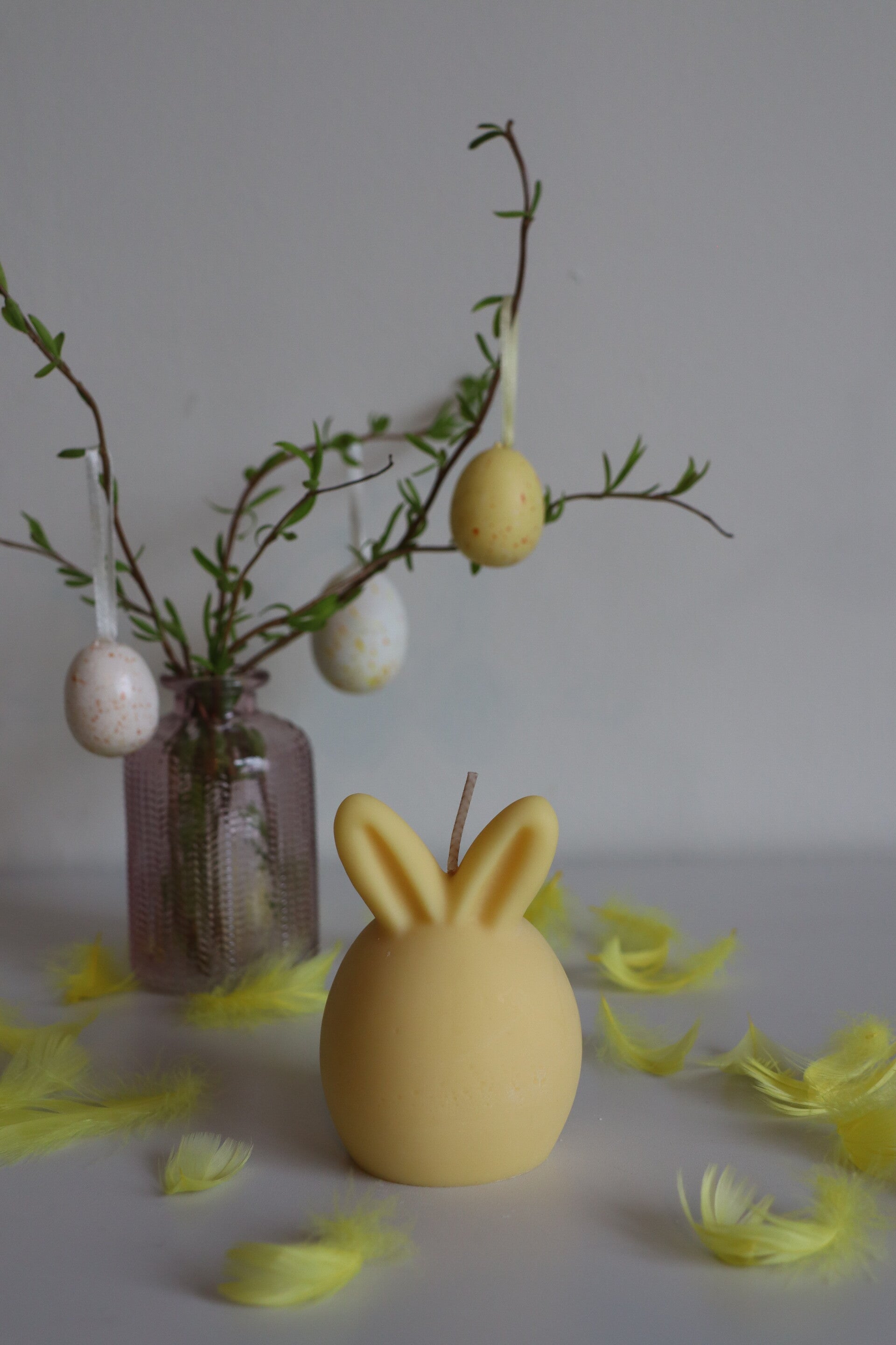 Deze kaars is verkrijgbaar in 3 verschillende kleuren: geel, oranje en wit.