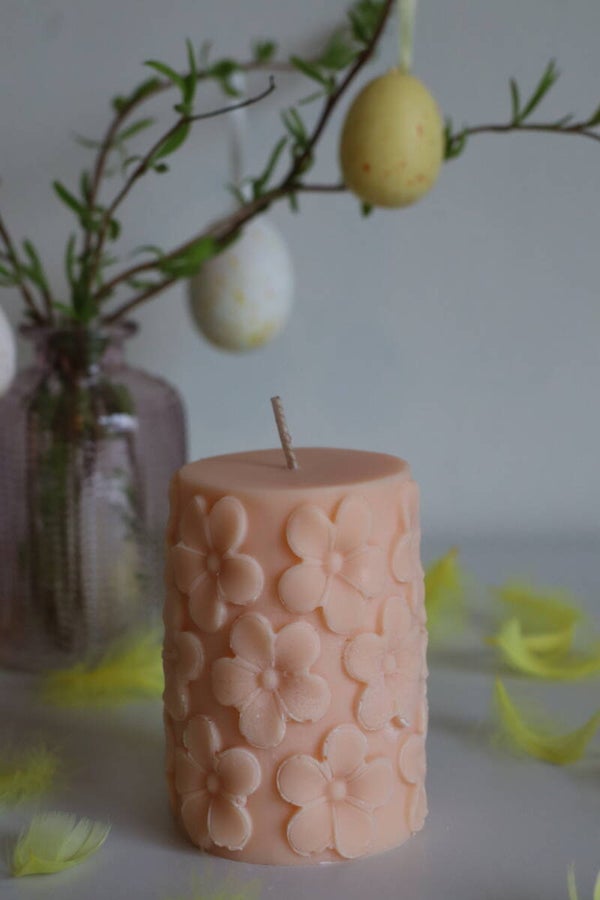 Deze kaars is verkrijgbaar in 3 verschillende kleuren: geel, oranje en wit.