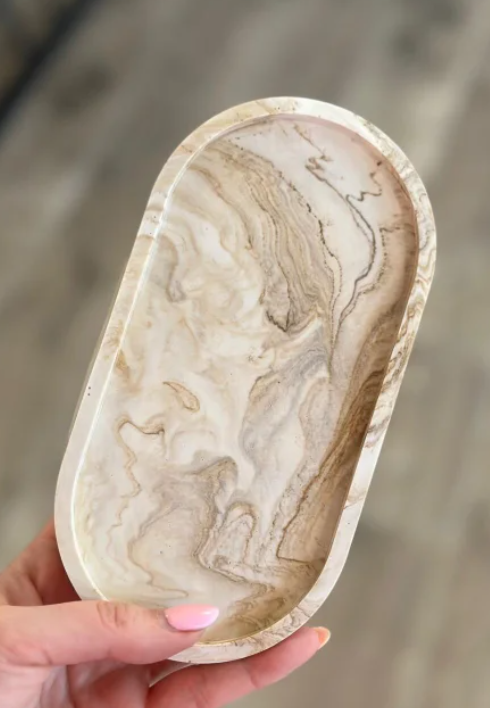In deze workshop maak je 2 kaarsjes en een jesmonite schaal met marmereffect zoals op de foto's (geen terrazzo). Na afloop neem je jouw 2 zelfgemaakte kaarsjes en 1 zelfgemaakte schaal mee naar huis!
